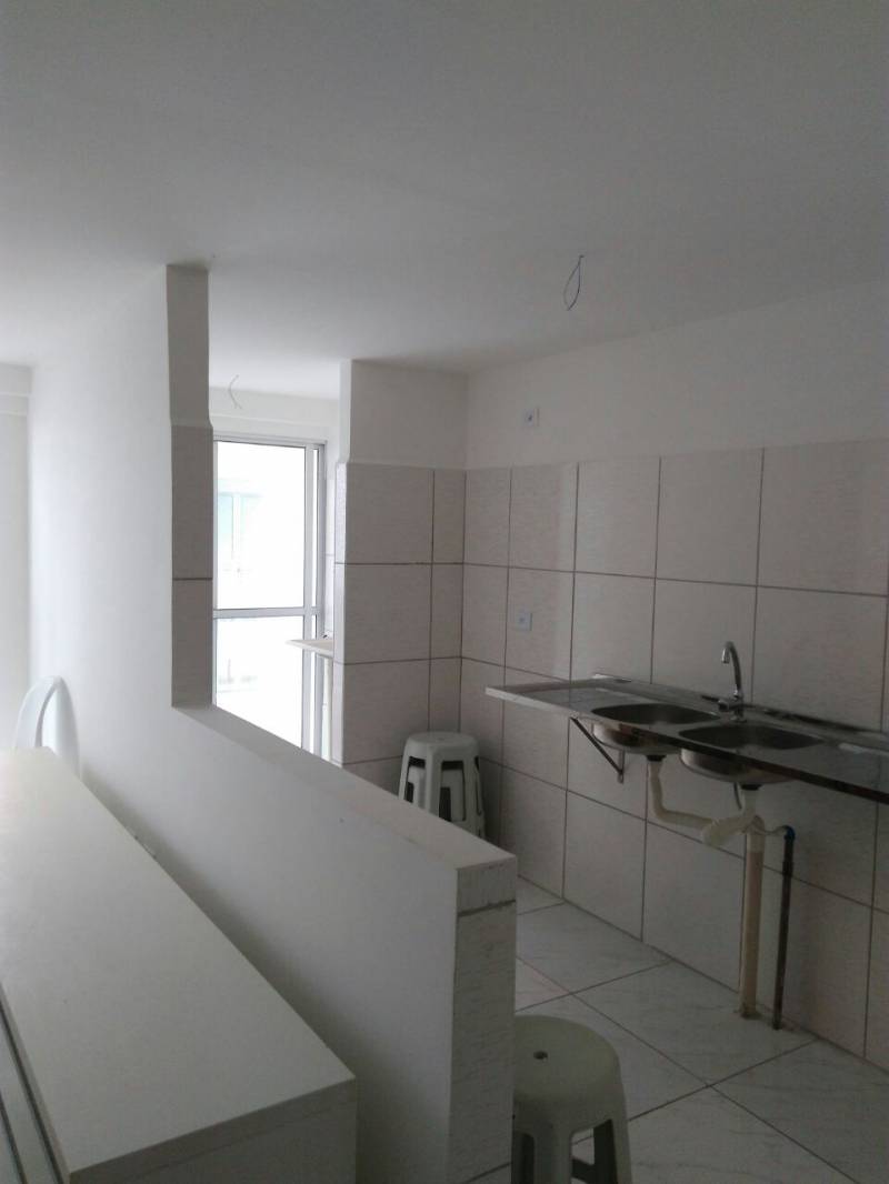 Apto no Privê Solar Mont Blanc em São Lourenço da Mata, 46m, sala para 2 ambientes, cozinha americana com pia em mármore e cerâmica no piso e paredes, banheiro social com box de vidro e todo em revestimento cerâmico, dois quartos, térreo e nascente...