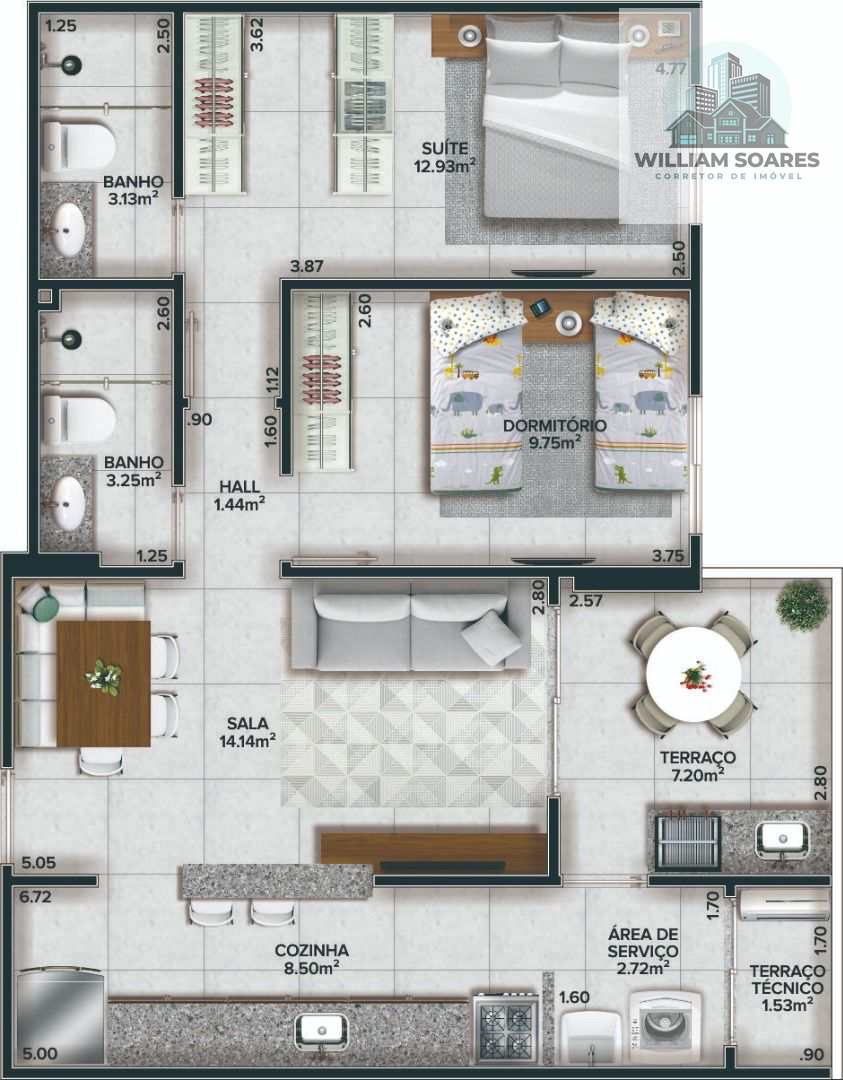 - 02 Dormitórios sendo 01 Suíte