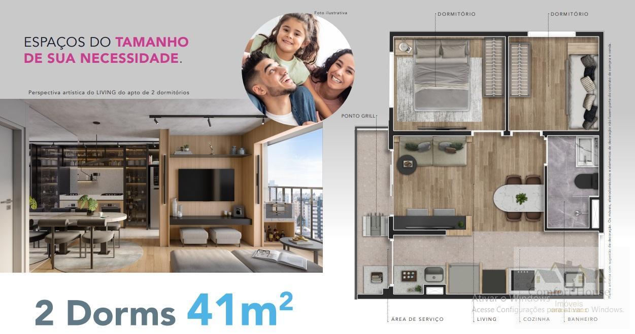 Apartamento dentro do programa minha casa minha vida. 1 ou 2 dormitórios com lazer completo Previsão de entrega: 09/2026 TOTAL DE UNIDADES 130 unidades, sendo: 34 unidades de 2 dorms 93 unidades de 1 dorm 3 Lojas ÁREAS DAS UNIDADES 2 dorms com 41m² 1...