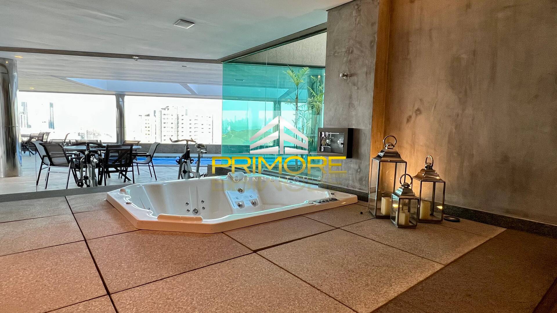 O CONDOMÍNIO:Piscina coberta aquecida com raia e SPA;Fitness Center;Sauna;Espaço gourmet com home cinema