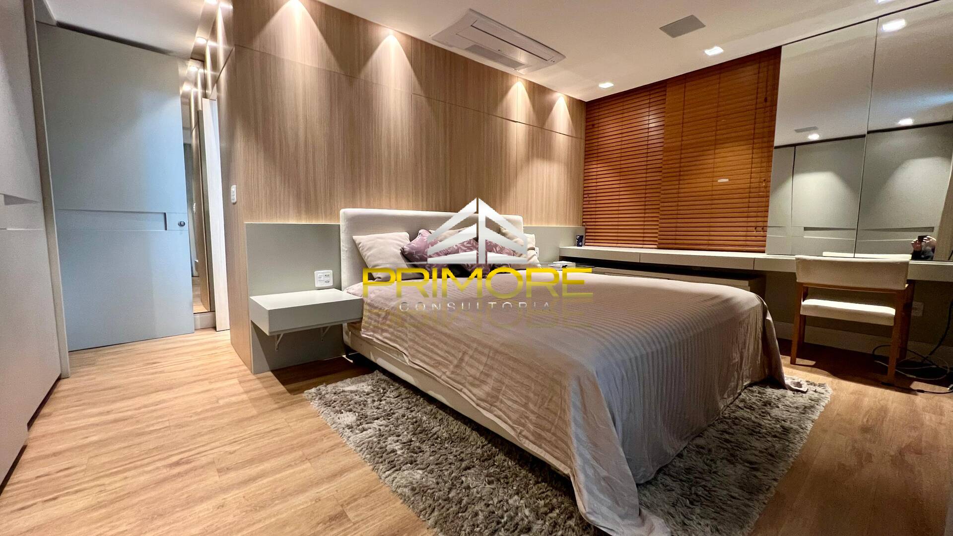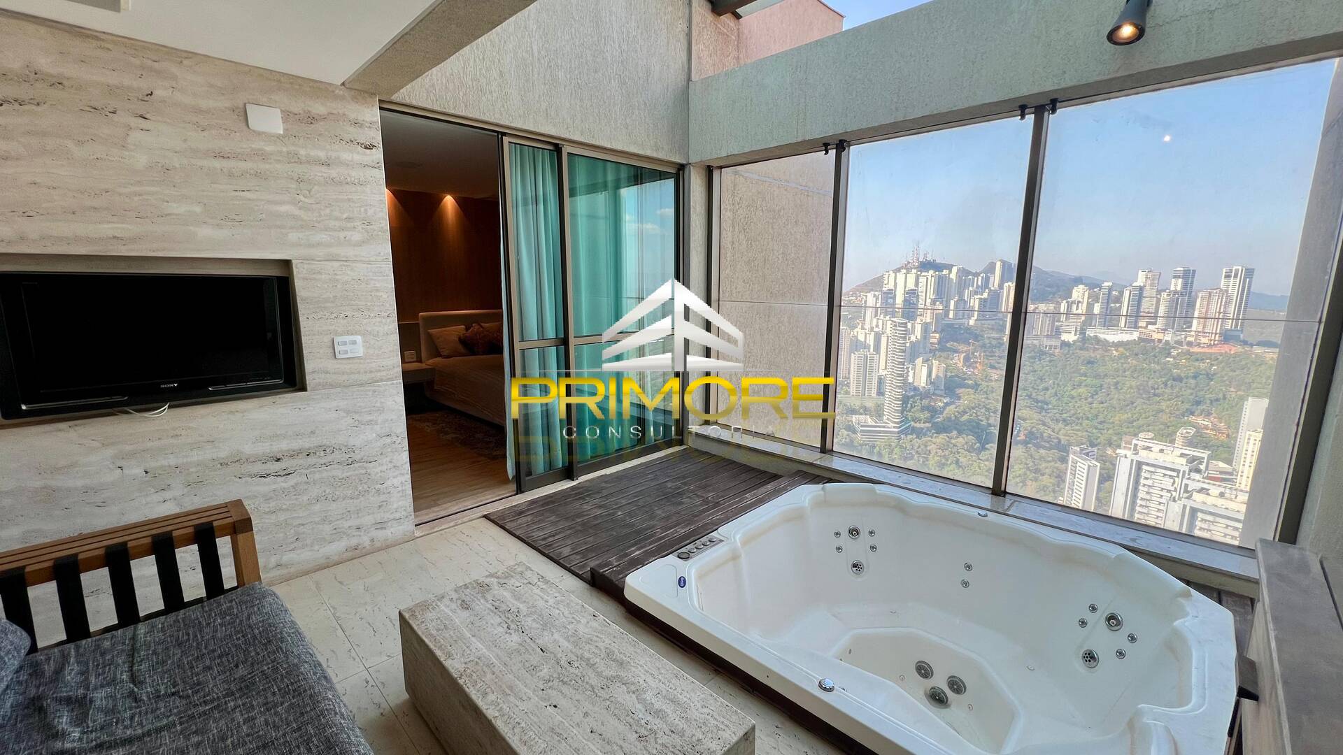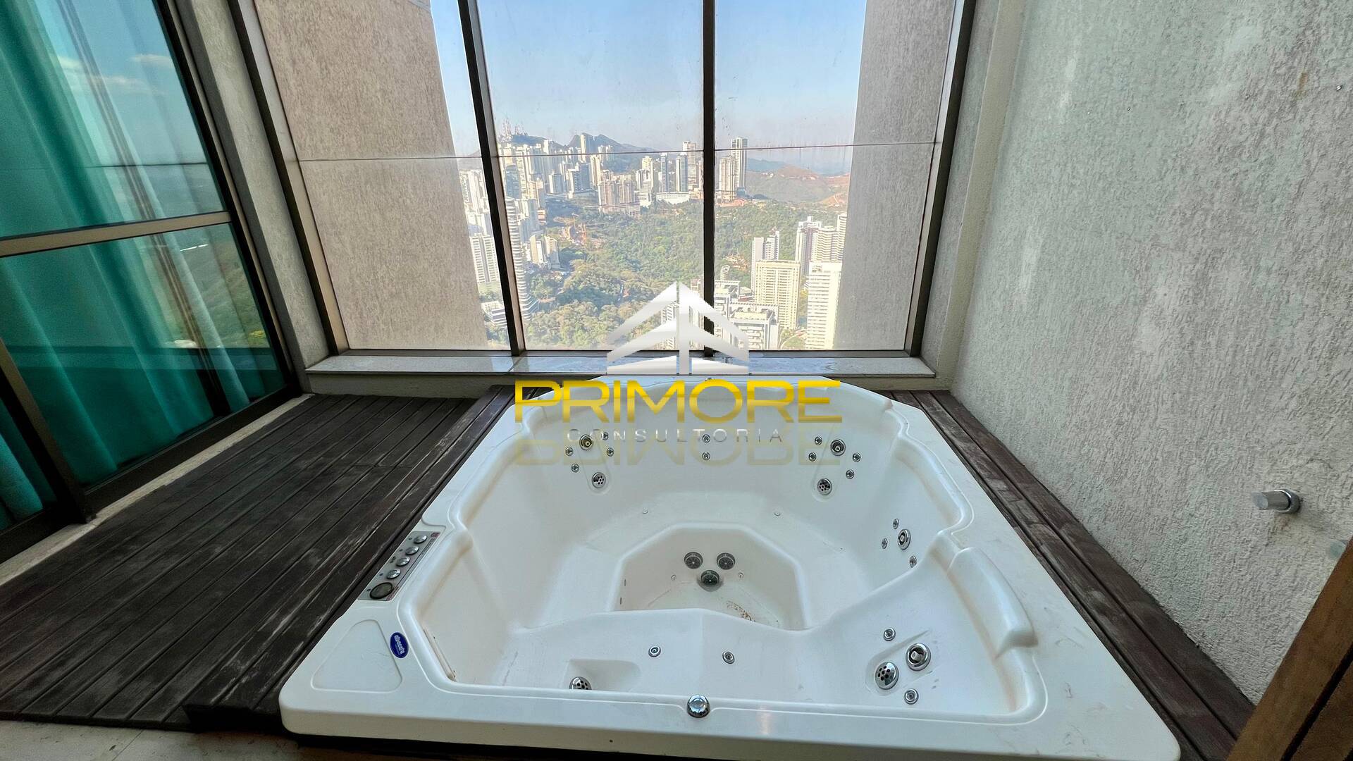 Suíte master, ampla, com ar condicionado;Varanda privativa com hidro e vista espetacular.