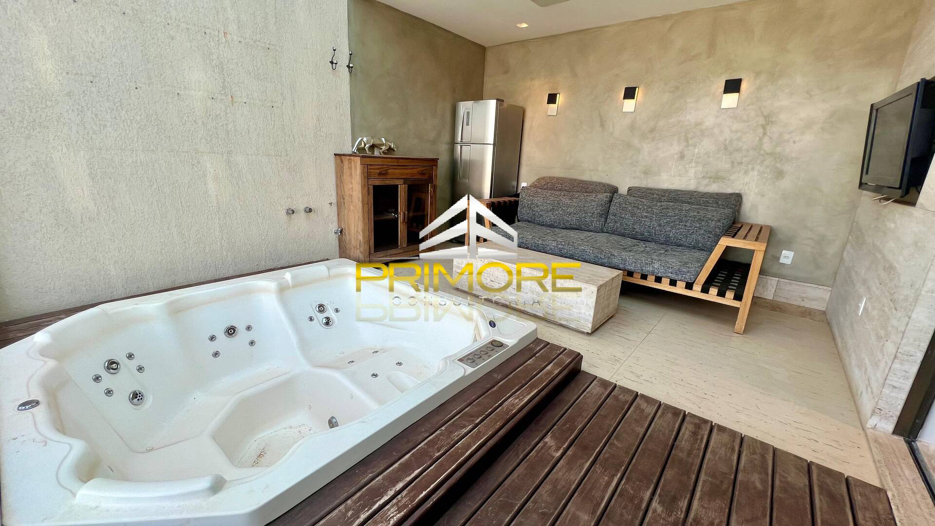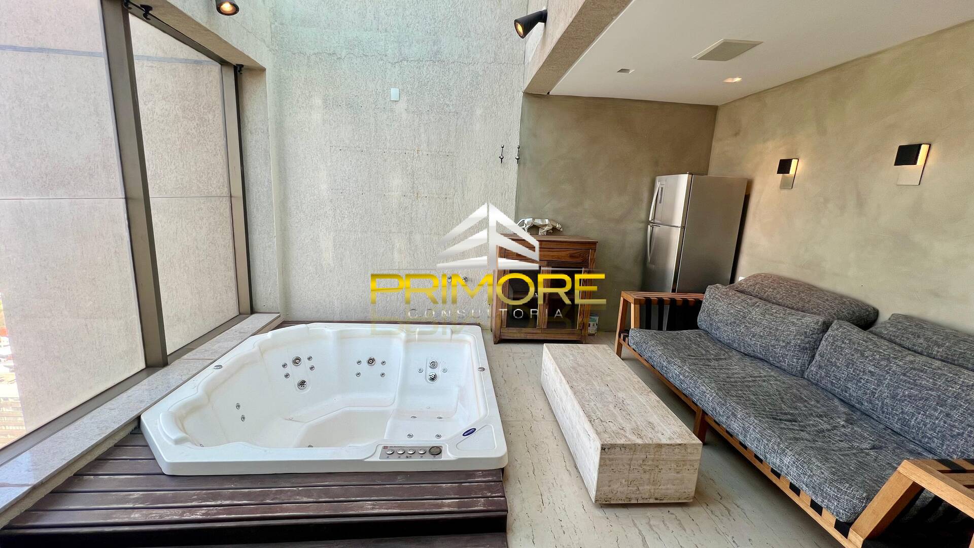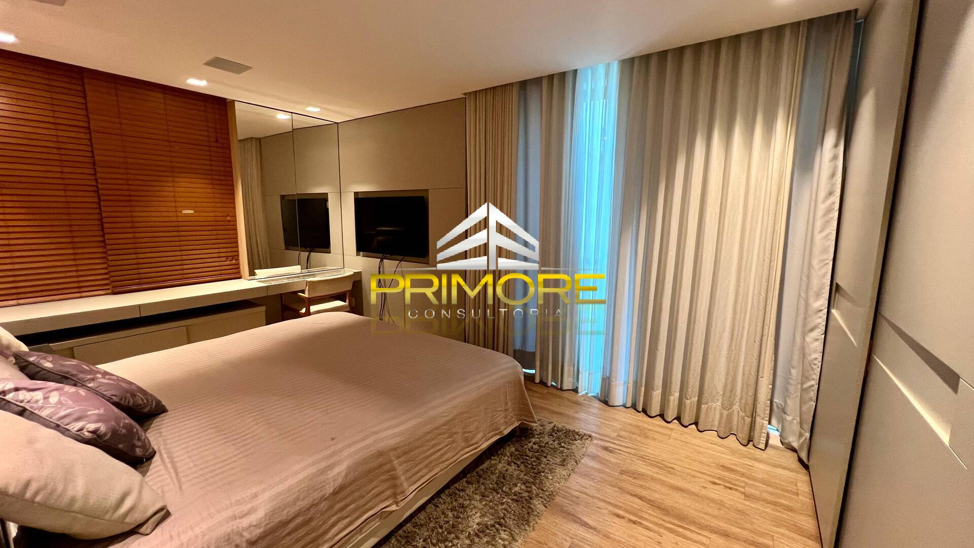 Suíte master, ampla, com ar condicionado;Varanda privativa com hidro e vista espetacular.