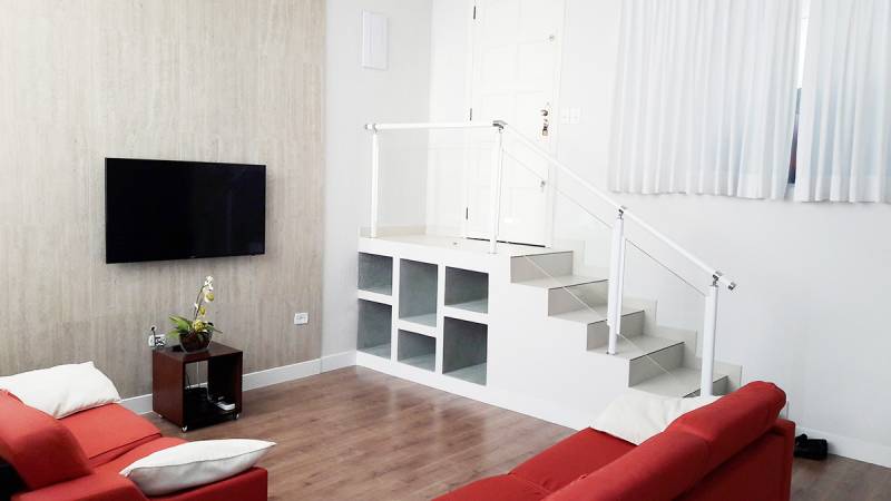 Descrições: Casa nova com projeto arquitetônico diferenciado, muita iluminação natural disposta em uma estrutura de vidro central em todo o imóvel, design de móveis planejados e totalmente decorado com ambientes dispostos em uma planta que dispõe de 120 mt² e 14 ambientes. São 4 dormitórios com 2 suítes.