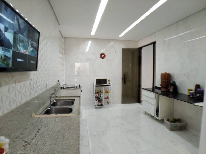 Área gourmet com cozinha, piscina e churrasqueira;