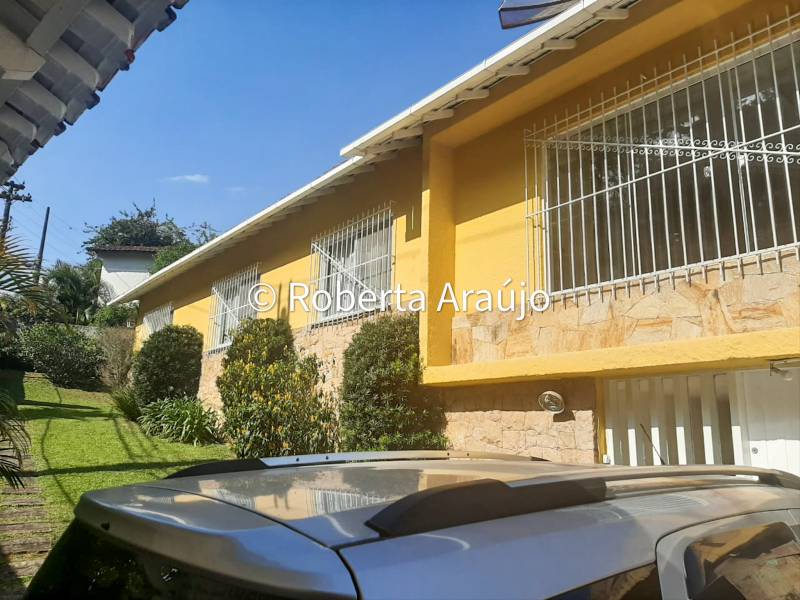 Linda casa com 3 quartos (sendo 1 suíte c/ armário), salão, lareira, sala com dois ambientes, banheiro, copa-cozinha, lavanderia, garagem p/ 2 carros, estacionamento, apto p/ hóspedes, churrasqueira, e piscina canil.