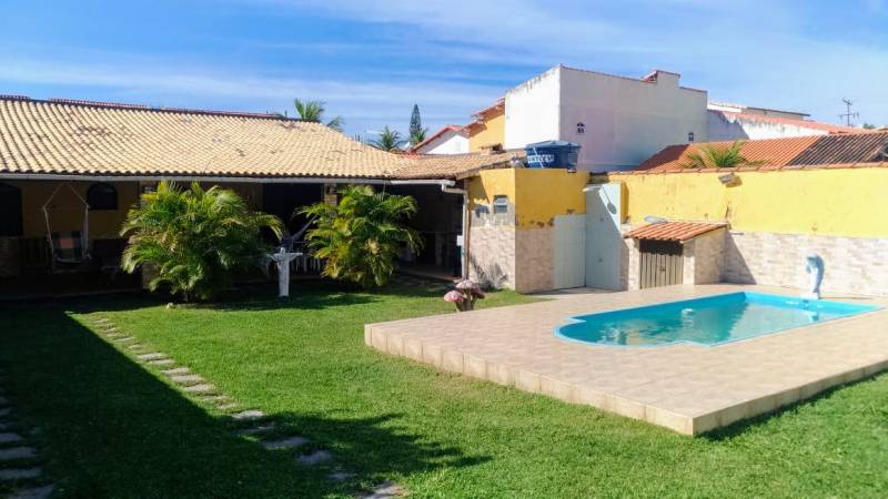 Linda casa em Guaratiba-Maricá, a uma quadra da praia. Terreno de 480m² com 110m² de área construída. Casa composta de um quarto, sala, cozinha com armários embutidos, dispensa, dois banheiros, varandão, churrasqueira, forno a lenha, piscina, quadra de areia, sistema de coleta de água da...